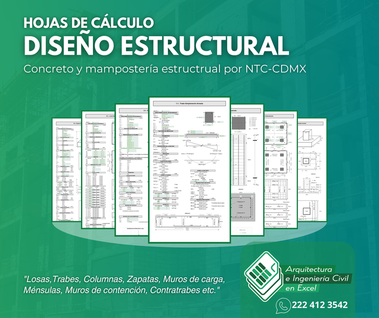 Hojas de cálculo para diseño estructural, calcula y optimiza elementos de concreto armado y mampostería estructural con base en la normativa NTC-CDMX-2023. Obtén resultados precisos para garantizar seguridad, eficiencia y cumplimiento en tus proyectos de construcción. ¡Una herramienta esencial!.